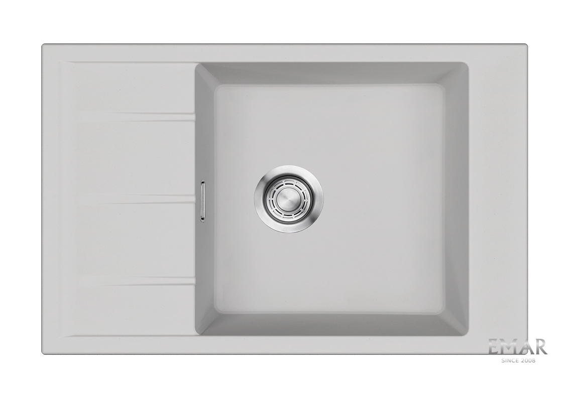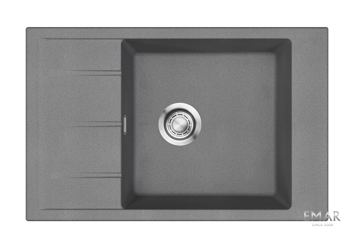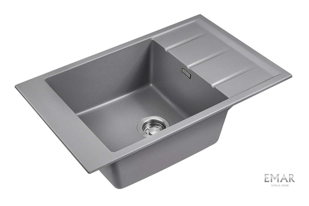 Кухонные мойки EMAR QUARTZ на 78% состоят из измельченного кварца различных фракций и 22% связующих полиэфирных смол модифицированных метилметакрилатом.