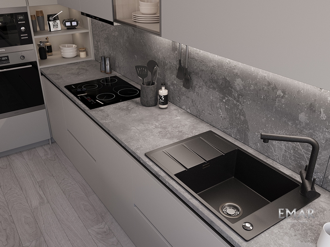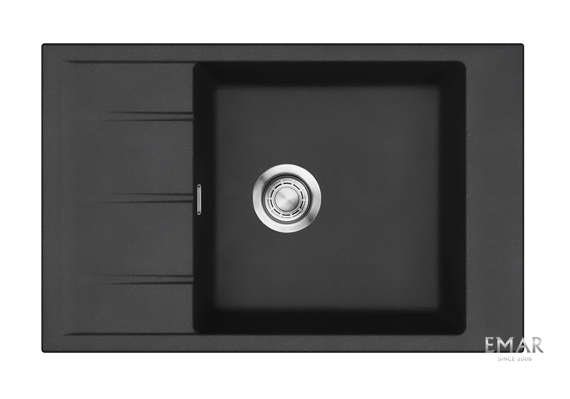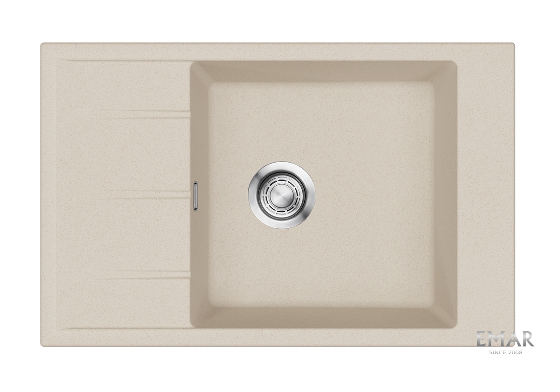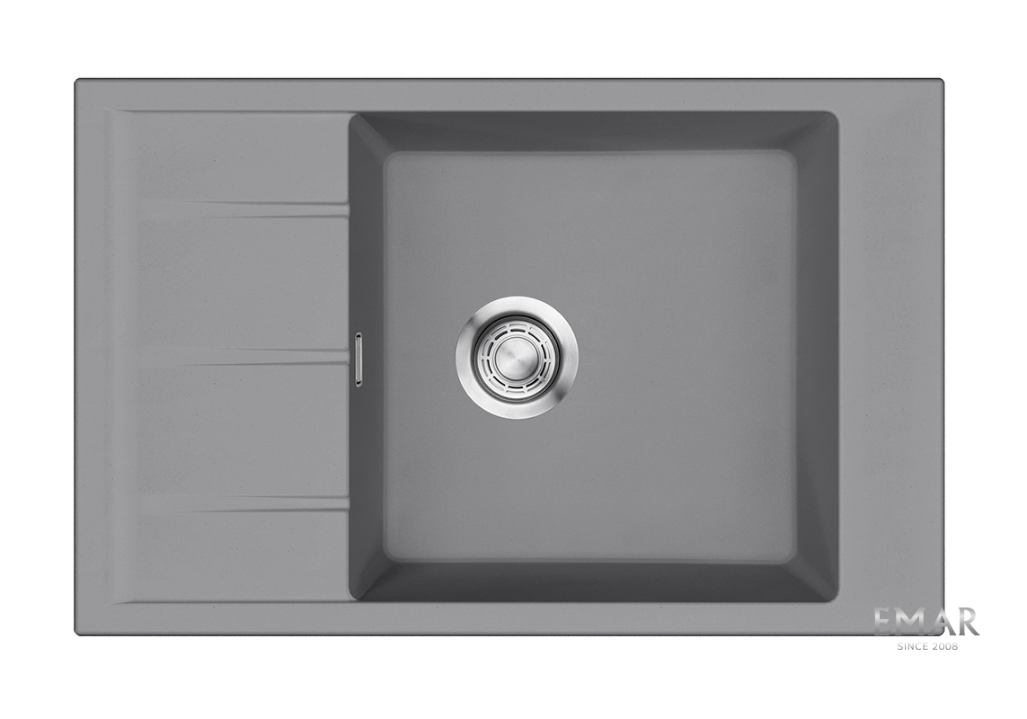 Кухонные мойки EMAR QUARTZ на 78% состоят из измельченного кварца различных фракций и 22% связующих полиэфирных смол модифицированных метилметакрилатом.